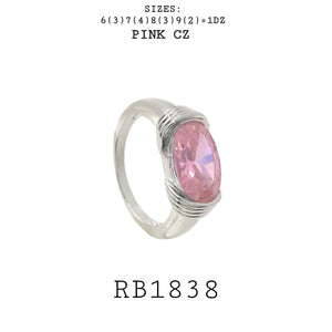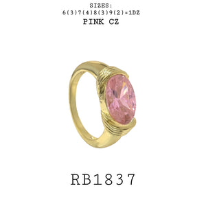 Big Eternity Bezel Set Oval Cut Pink CZ Ring in Brass, 6mm