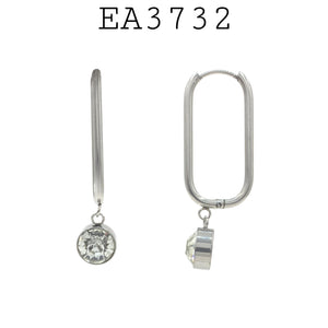 Continue ShoppingCZ Dangle Silver Oval Shaped Stainless Steel Huggie Hoop Earrings, 15mm