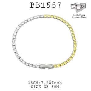 3mm Half White Half Yellow (Citrine) Cubic Zirconia Tennis Brass Bracelet