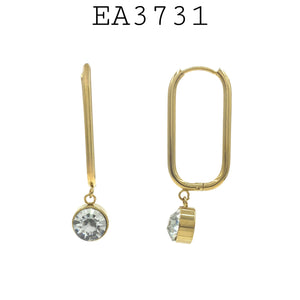 CZ Dangle Gold Plated Oval Shaped Stainless Steel Huggie Hoop Earrings, 15mm