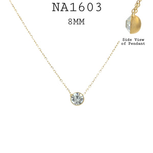3. Round Solitaire Charm Pendant Necklace in Gold Plated Stainless Steel, 18" inch
