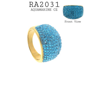 Gold Plated Stainless Steel Cubic Zirconia Large Fashion Pave CZ Cocktail Ring