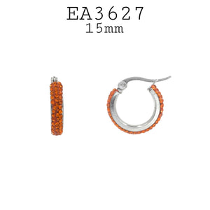All Around Crystal Pave Set Small Stainless Steel Hoop Earrings, 15mm