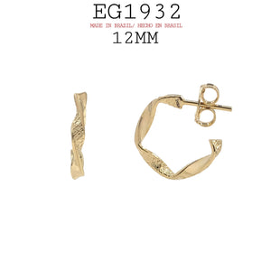 18K Gold Filed Open Round Swirled Hoops , Push Back Closure, 12mm