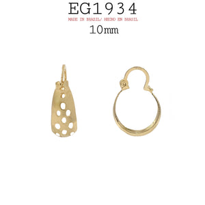 Small 18K Gold-Filed Round Hoops perforated Design , Hinged Closure 10mm